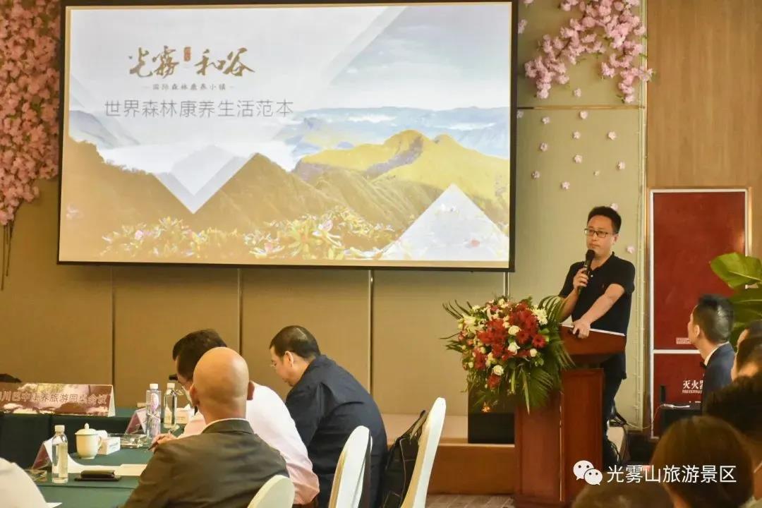 會上,光霧山風管處副主任、光霧山鎮(zhèn)鎮(zhèn)長熊靜芳對與會人員表示歡迎并致辭,光霧山旅游公司總經(jīng)理羅尚志推介了光霧山康養(yǎng)旅游產(chǎn)品及線路,開元集團康養(yǎng)事業(yè)部營銷中心總經(jīng)理湯春介紹了光霧和谷康養(yǎng)旅游產(chǎn)品。